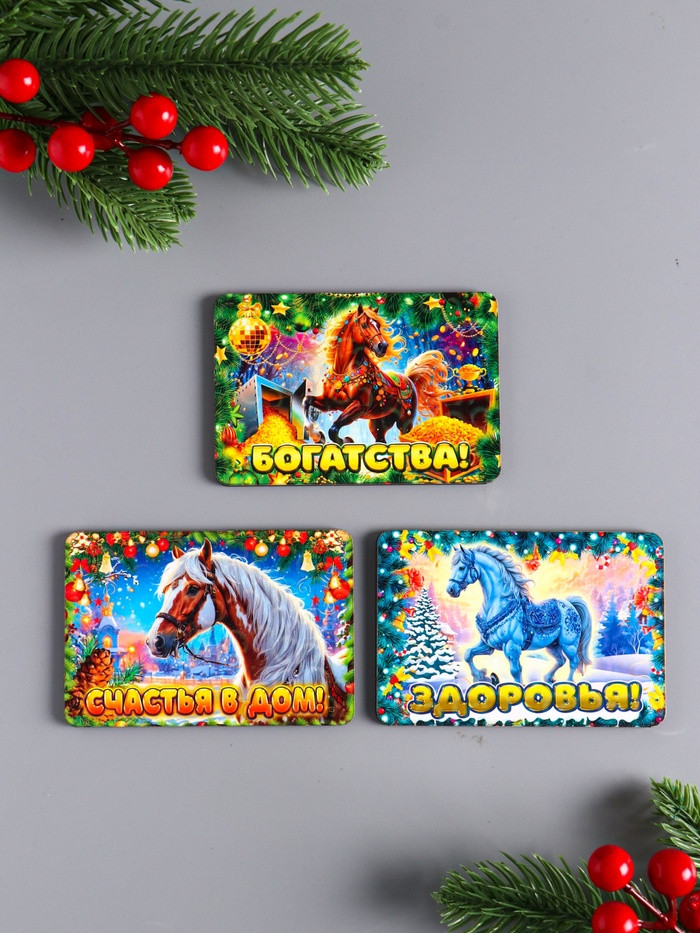 Дарим Красиво Набор магнитов на холодильник «Конь новогодний. Здоровья»новинка -25%