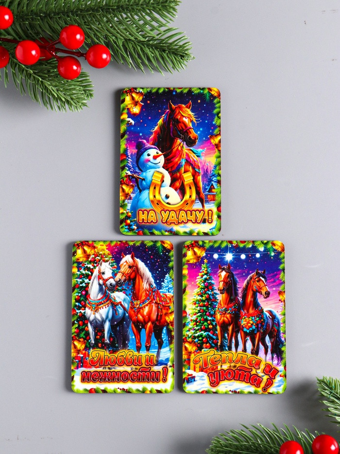 Дарим Красиво Набор магнитов на холодильник «Конь новогодний. На удачу»новинка -25%