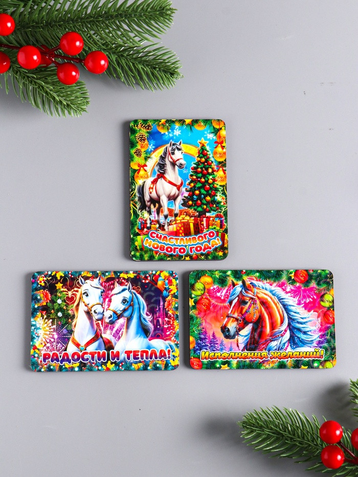 Дарим Красиво Набор магнитов на холодильник «Конь новогодний. Радости и тепла»новинка -25%