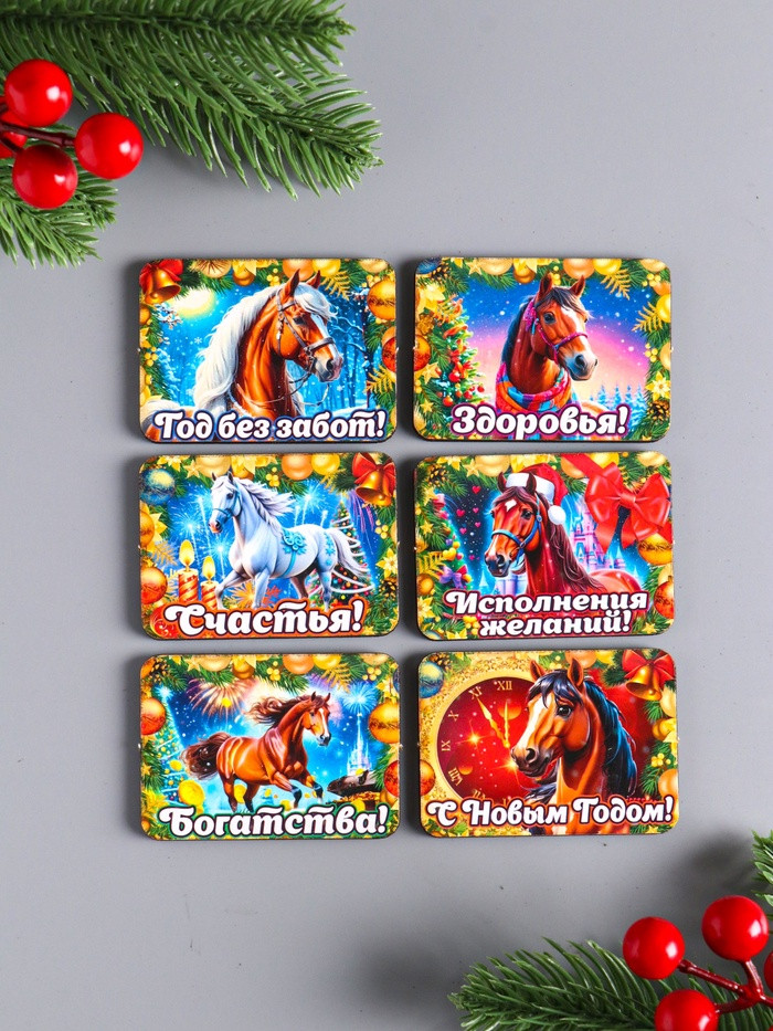 Дарим Красиво Набор магнитов на холодильник «Конь новогодний. Богатства»новинка -25%