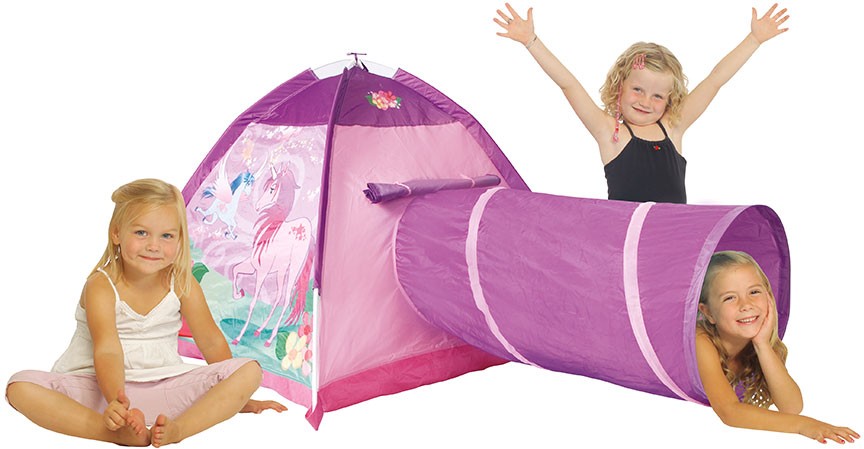 Five Stars Игровая палатка с туннелем «Волшебный единорог»В данный момент этот товар отсутствует в продаже. Возможно, у нас найдется аналогичный или похожий товар здесь. Маленькие принцессы будут несказанно рады возможности поиграть в уютной палатке розового цвета, на которой изображены красивейшие мифические создания — волшебные единороги. Один единорог розового цвета нарисован стоящим на зеленом лугу, другой единорог-пегас голубого цвета изображен летящим в небе. Тент совмещен с игровым туннелем. Он очень легко раскладывается и складывается, помещается в компактную коробку. Практичный и безопасный материал может использоваться и на улице, и дома. Тент легкий, поэтому его можно с легкостью перевозить, брать с собой на природу. |