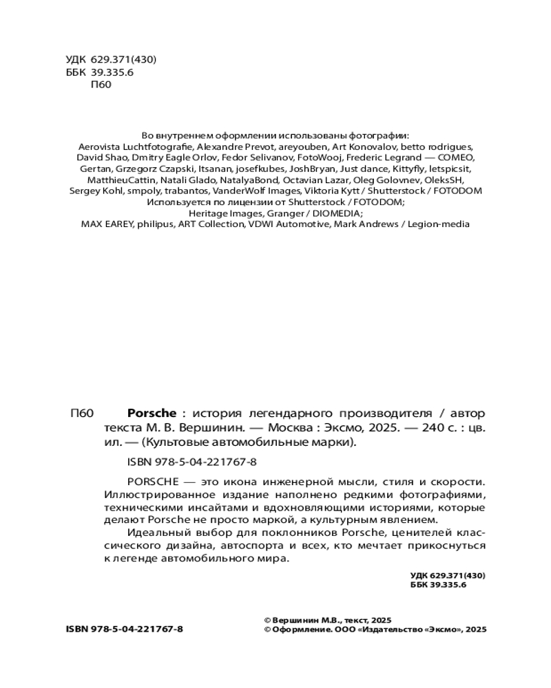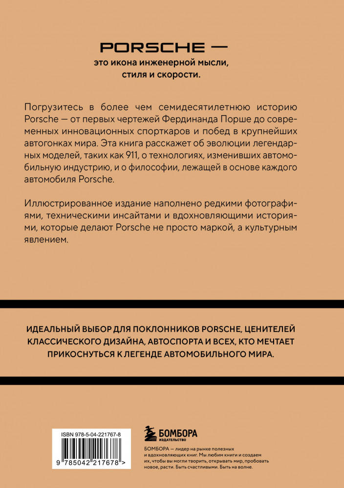 Серия: Культовые автомобильные марки Porsche — это икона инженерной мысли, стиля и скорости. Погрузитесь в более чем семидесятилетнюю историю Porsche — от первых чертежей Фердинанда Порше до современных инновационных спорткаров и побед в крупнейших автогонках мира. Эта книга расскажет об эволюции легендарных моделей, таких как 911, о технологиях, изменивших автомобильную индустрию, и о философии, лежащей в основе каждого автомобиля Porsche. |