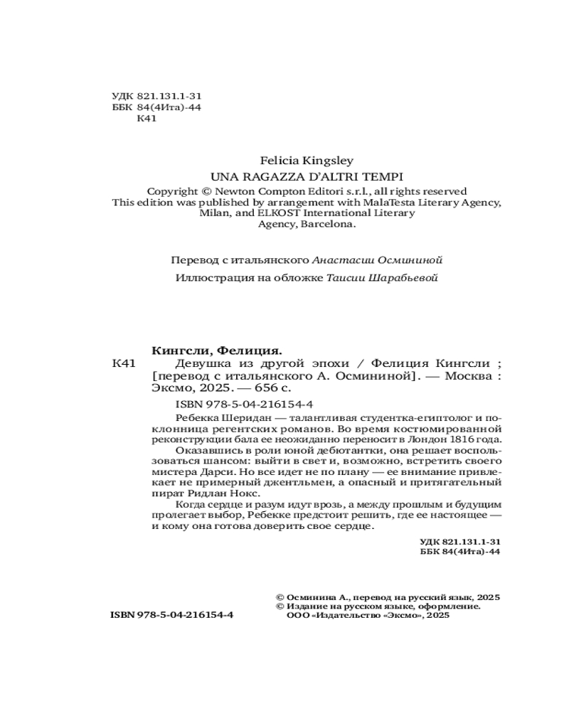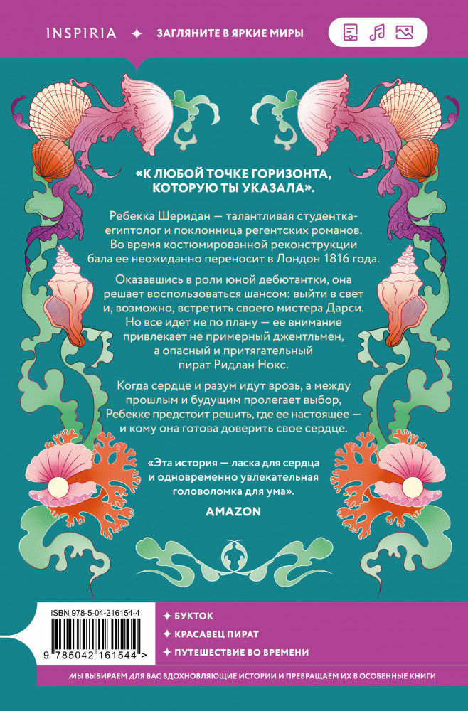 💳 Оплатить за товар можно при получении 🇰🇿 Есть бесплатная доставка по Казахстану 🎁 Копите бонусы с каждой покупки Серия: Cupcake. Бестселлеры Буктока. Италия Ребекка Шеридан — талантливая студентка-египтолог и поклонница регентских романов. Во время костюмированной реконструкции бала ее неожиданно переносит в Лондон 1816 года. Оказавшись в роли юной дебютантки, она решает воспользоваться шансом: выйти в свет и, возможно, встретить своего мистера Дарси. Но все идет не по плану — ее внимание привлекает не примерный джентльмен, а опасный и притягательный пират Ридлан Нокс. Когда сердце и разум идут врозь, а между прошлым и будущим пролегает выбор, Ребекке предстоит решить, где ее настоящее — и кому она готова доверить свое сердце. |
