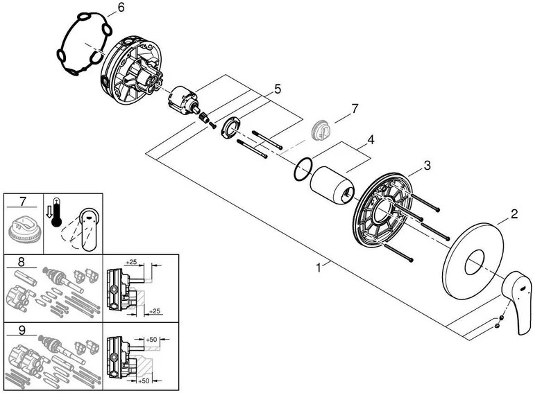 • Grohe SilkMove керамический картридж Ø 46 мм;