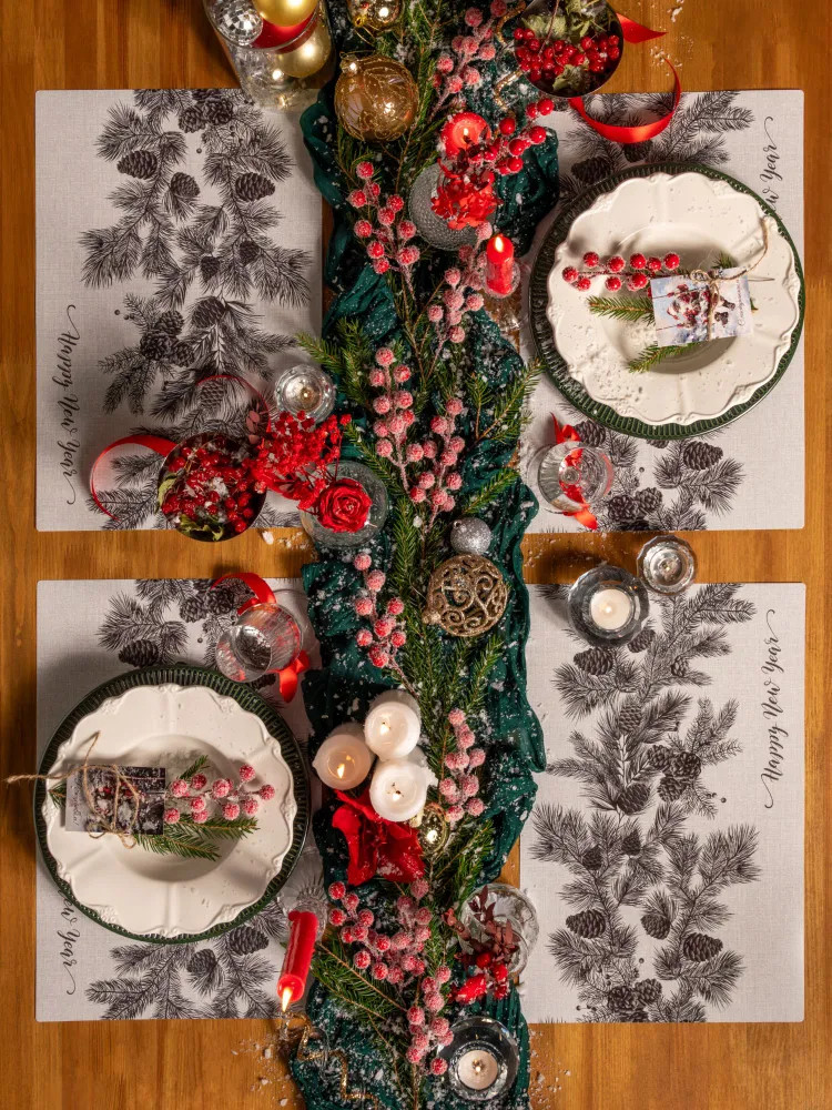 Стильные плейсматы разнообразят сервировку новогоднего стола и помогут создать в доме праздничное настроение! Термостойкие салфетки, которые также не впитывают запахи и отлично держат форму, можно использовать как подставки под столовые приборы и посуду, в том числе горячую. Настольные салфетки защищают твердую поверхность от царапин, крошек, влаги и глубоких пятен. |