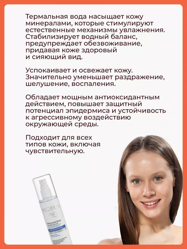 KORA Термальная вода Пиренейских горВ данный момент этот товар отсутствует в продаже. Возможно, у нас найдется аналогичный или похожий товар здесь. Термальная вода, добытая из недр Пиренейских гор (Франция), обогащенная минералами и полезными веществами стимулирует естественные механизмы увлажнения кожи. Быстро восстанавливает потерю влаги, снимает раздражение и шелушение, обладает антиоксидантным действием и повышает защитный потенциал эпидермиса. Абсорбирует излишки кожного себума, в связи с чем является идеальным продуктом для обладательниц комбинированного типа кожи. Максимальное удобство применения обеспечивает мелкодисперсное распыление дозатора. Средство многофункционально, может быть использовано в любой период года, как поверх макияжа, так и после этапа очищения. |