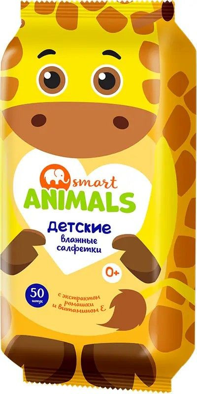 Авангард Салфетки влажные детские с ромашкой и витамином Е «Smart animals»
