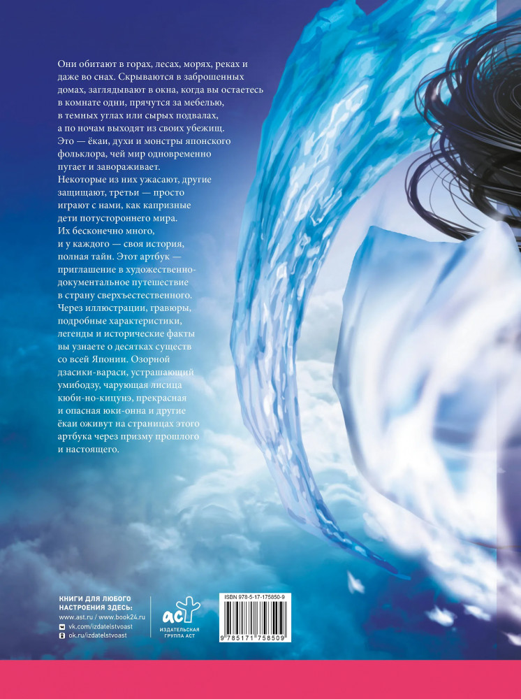 Серия: Артбуки. Красочные миры Они обитают в горах, лесах, морях, реках и даже во снах. Скрываются в заброшенных домах, заглядывают в окна, когда вы остаетесь в комнате одни, прячутся за мебелью, в темных углах или сырых подвалах, а по ночам выходят из своих убежищ. Это — ёкаи, духи и монстры японского фольклора, чей мир одновременно пугает и завораживает. Некоторые из них ужасают, другие защищают, третьи — просто играют с нами, как капризные дети потустороннего мира. Их бесконечно много, и у каждого — своя история, полная тайн. |