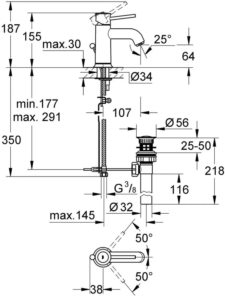 Grohe Смеситель для раковины с донным клапаномновинка -20%