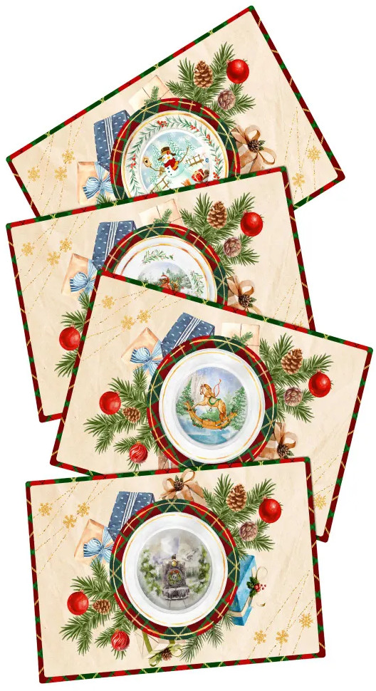 Стильные плейсматы разнообразят сервировку новогоднего стола и помогут создать в доме праздничное настроение! Термостойкие салфетки, которые также не впитывают запахи и отлично держат форму, можно использовать как подставки под столовые приборы и посуду, в том числе горячую. Настольные салфетки защищают твердую поверхность от царапин, крошек, влаги и глубоких пятен. Красивые и полезные рождественские плейсматы из пластика — отличная покупка для дома или дачи. Они помогут оживить интерьер в праздник или во время повседневной трапезы. |