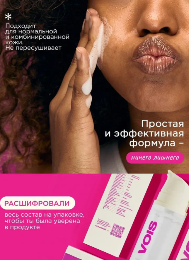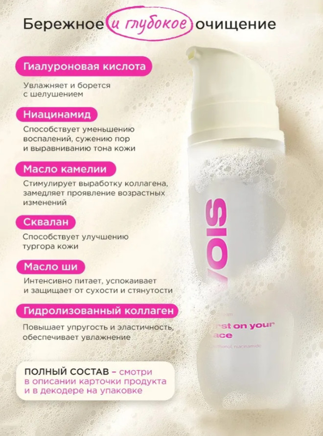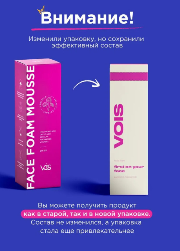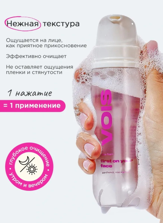 VOIS Пенка для умывания лица и снятия макияжа увлажняющая с гиалуроновой кислотой