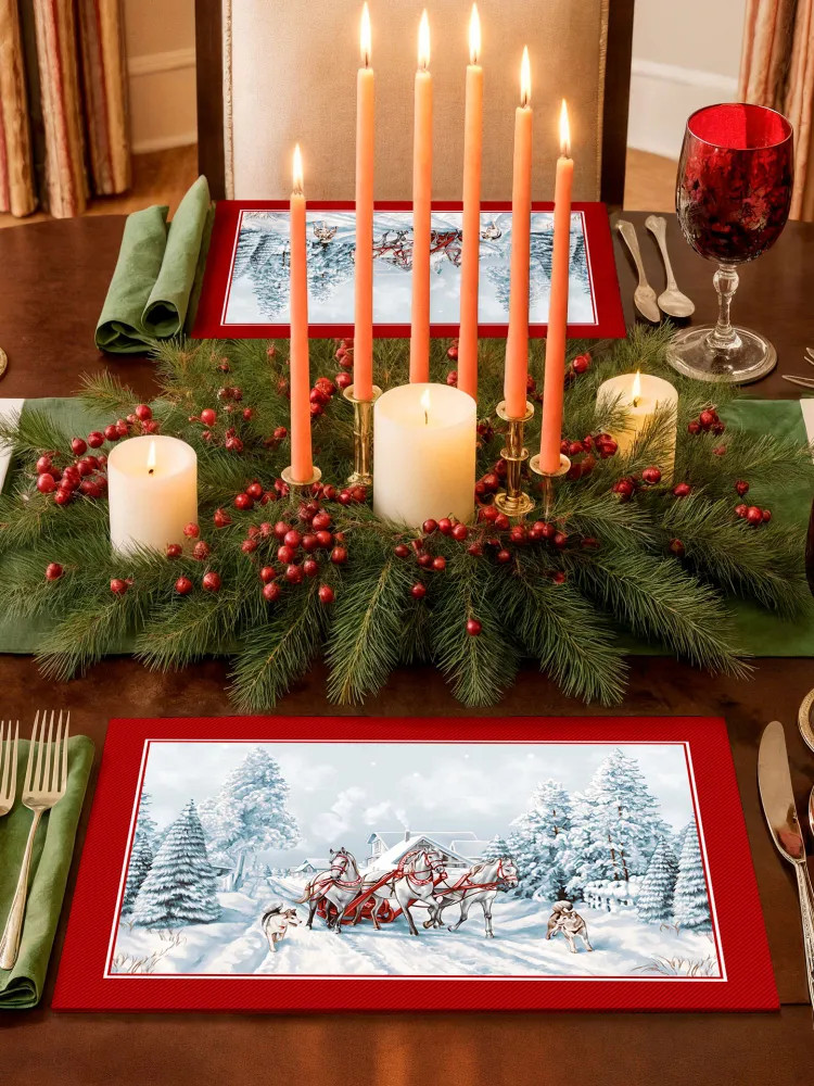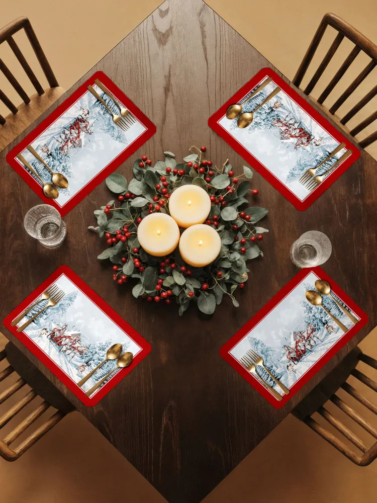 Стильные плейсматы разнообразят сервировку новогоднего стола и помогут создать в доме праздничное настроение! Термостойкие салфетки, которые также не впитывают запахи и отлично держат форму, можно использовать как подставки под столовые приборы и посуду, в том числе горячую. Настольные салфетки защищают твердую поверхность от царапин, крошек, влаги и глубоких пятен. Красивые и полезные рождественские плейсматы из пластика — отличная покупка для дома или дачи. Они помогут оживить интерьер в праздник или во время повседневной трапезы. |
