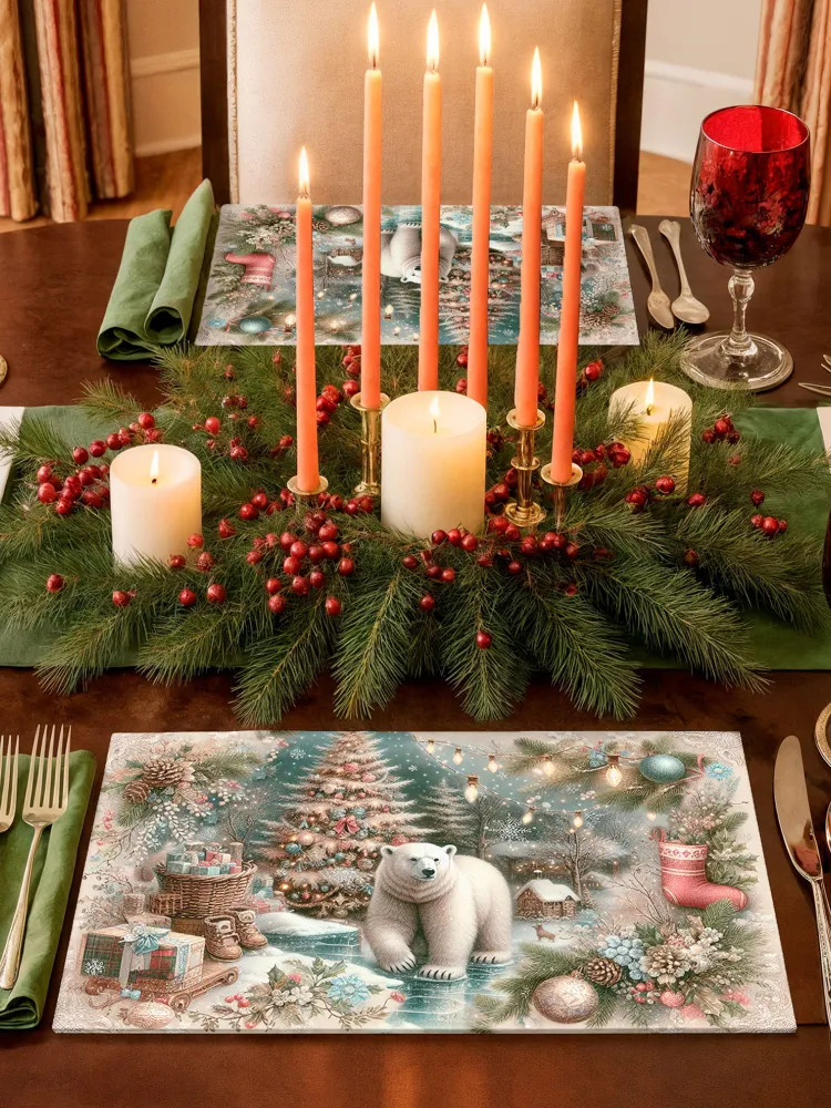 Стильные плейсматы разнообразят сервировку новогоднего стола и помогут создать в доме праздничное настроение! Термостойкие салфетки, которые также не впитывают запахи и отлично держат форму, можно использовать как подставки под столовые приборы и посуду, в том числе горячую. Настольные салфетки защищают твердую поверхность от царапин, крошек, влаги и глубоких пятен. Красивые и полезные рождественские плейсматы из пластика — отличная покупка для дома или дачи. Они помогут оживить интерьер в праздник или во время повседневной трапезы. |