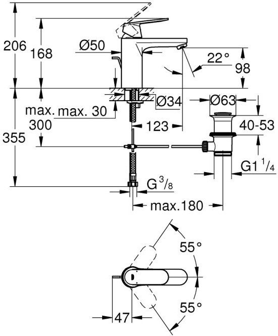 Серия: Eurosmart Cosmopolitan Смеситель с монтажом на одно отверстие, металлический рычаг, Grohe SilkMove керамический картридж 35 мм., регулировка расхода воды. Имеет Grohe Long-Life Finish — стойкое долговечное покрытие, Grohe Water Saving ограничитель расхода воды 5,7 л/мин, Grohe FastFixation система быстрого монтажа. |