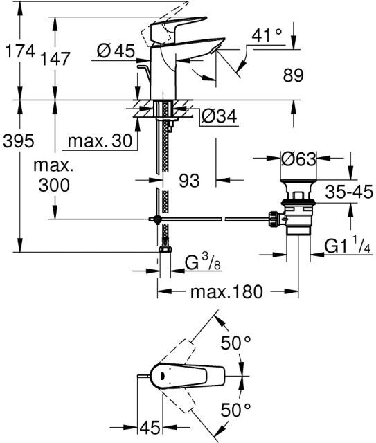 • GROHE Water Saving Технология совершенного потока при уменьшенном расходе воды;