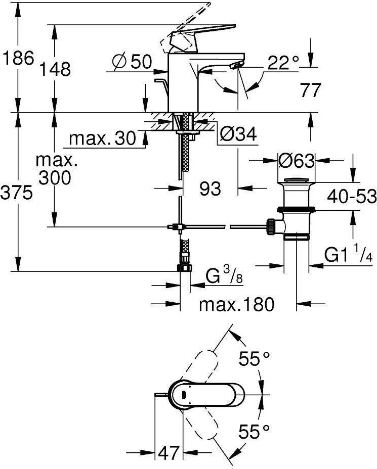 Grohe Смеситель для раковины с донным клапаномновинка -20%