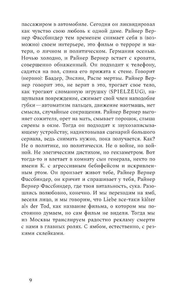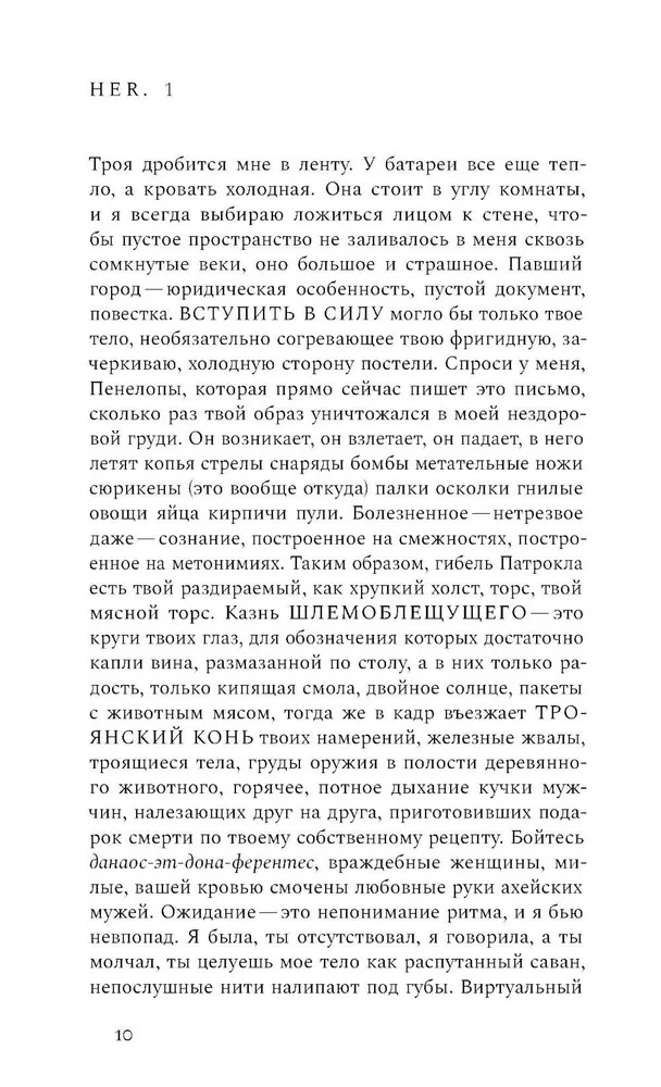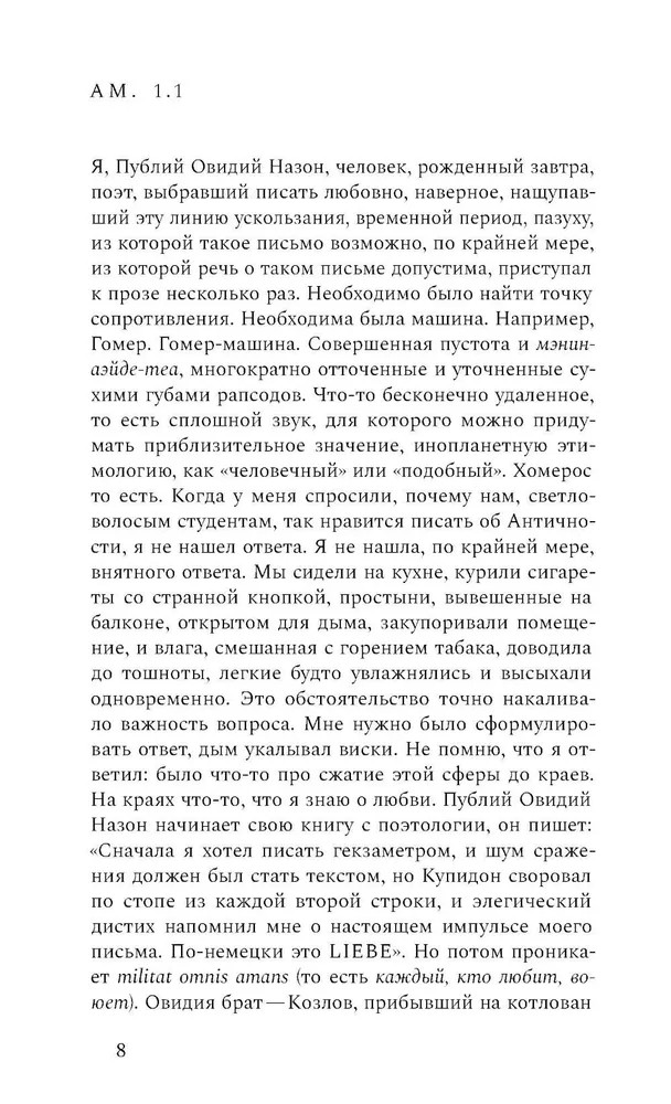 Овидий-романновинка В данный момент этот товар отсутствует в продаже. Возможно, у нас найдется аналогичный или похожий товар здесь. «Кто представляет нас, что представляет нас? Всех нас, а именно Публия Овидия Назона. Мутабор / Клуб „Клуб“ / Музей „Гараж“? Это вообще место, журнал, сообщество? Какое сообщество? Кто скрывается за словом „нас“? Что за „мы“?» Эти риторические вопросы стоят в центре экспериментального романа Егора Зернова. Перебирая различные стили письма (от эссе до монодрамы), автор ищет вечно ускользающую идентичность времени и поколения. Фрагментированные описания студенческих будней с походами в кофейню и техно-рейвами неожиданно компонуются вокруг фигуры Овидия: античность и современность сплавляются в этом тексте до почти полного неразличения, а пародия и обращение к чужим голосам чередуются с радикальной искренностью. Античные сюжеты и трагическая биография римского поэта обретают актуальность в контексте сегодняшних исторических катастроф и становятся точкой, из которой возможен свежий взгляд на хаос настоящего. Егор Зернов — поэт, режиссер, междисциплинарный художник, филолог, автор сборников «ВЫЖИГАНИЕ» (2022) и «Кто не спрятался я не виноват» (2024). |
