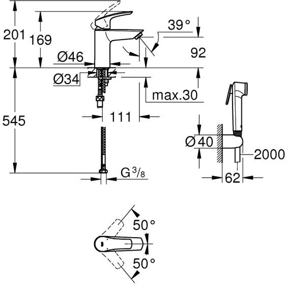 Система быстрого монтажа GROHE FastFixation и гибкая подводка упрощают установку. Гладкий корпус смесителя и профессиональная серия подчеркивают его элегантный и лаконичный дизайн. Комплектация также включает гигиенический душ с встроенным переключателем, настенный держатель и душевой шланг, что делает его удобным для ежедневного использования и обеспечивает многофункциональность.