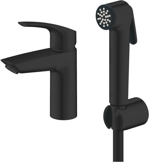 Смеситель для раковины с гигиеническим душем GROHE Eurosmart 231242433 в матовом черном цвете — это компактное и практичное решение для ванной комнаты, выполненное в размере S. Предназначенный для монтажа на одно отверстие, смеситель имеет металлический рычаг управления и оснащен керамическим картриджем GROHE SilkMove диаметром 28 мм, обеспечивающим плавное регулирование температуры и напора воды.