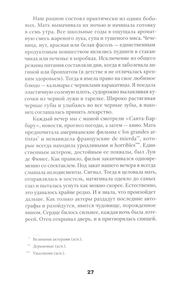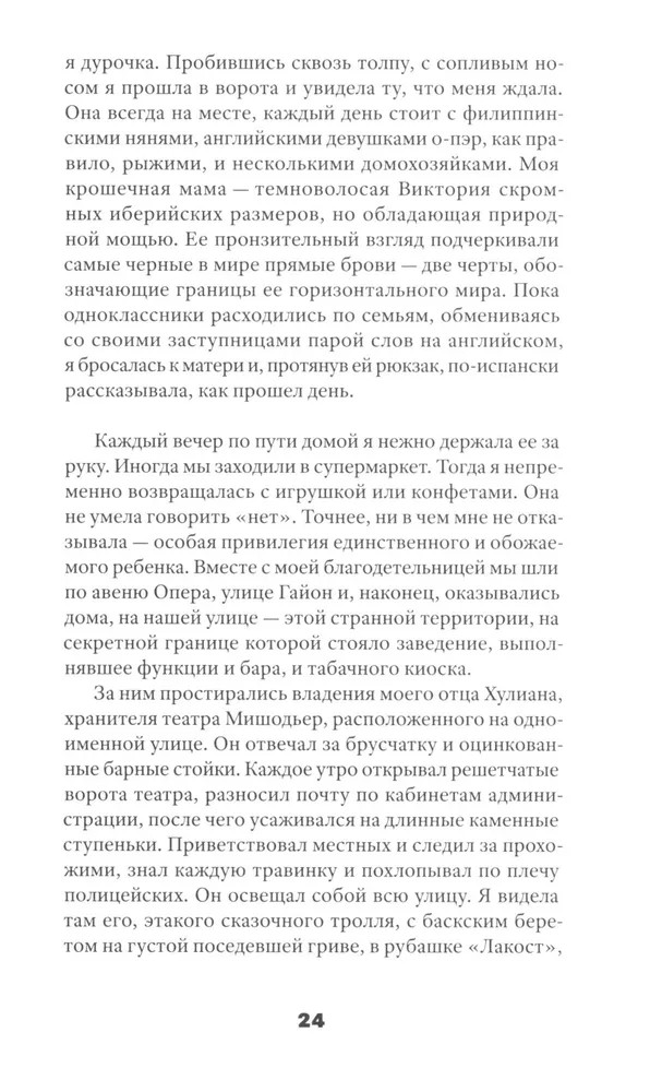 Люди из Бильбао рождаются где захотятВ данный момент этот товар отсутствует в продаже. Возможно, у нас найдется аналогичный или похожий товар здесь. Детство Марии, дочери эмигрантов из Бильбао, прошло за кулисами парижского театра Мишодьер, среди актеров, костюмов и декораций: ее отец Хулиан — баск с взрывным характером, коллекцией оружия и пристрастием к алкоголю — работает здесь хранителем, а мать Виктория — некогда неотразимая галисийка, встречающая вспышки ярости мужа покорным молчанием, — уборщицей. Взрослея, Мария отдаляется от семьи, учится на кинорежиссера, влюбляется, делает карьеру — в общем, живет своей жизнью. Пока случайно не узнает, что эта жизнь построена на лжи, а у Виктории и Хулиана есть один большой секрет. В поисках правды Мария возвращается в Страну Басков, погружается в запутанные коррупционные схемы постфранкистского периода, полностью переосмысляет отношения с родителями и решает рассказать свою историю необычным для кинематографиста способом — написав роман, в котором ловкие монтажные склейки будут переносить читателя из рыбацкой деревни в Галисии в злачные районы Бильбао; из иезуитского приюта для бедняков в богемные бары Парижа; с театральной сцены, где разыгрывают бульварные комедии, на арену кровавой корриды. |
