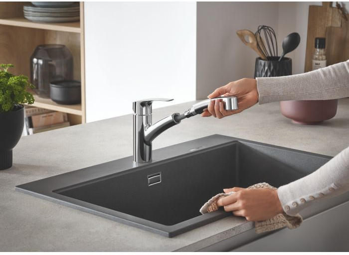 Смеситель для кухонной мойки GROHE Eurosmart с вытяжным душем, хром.