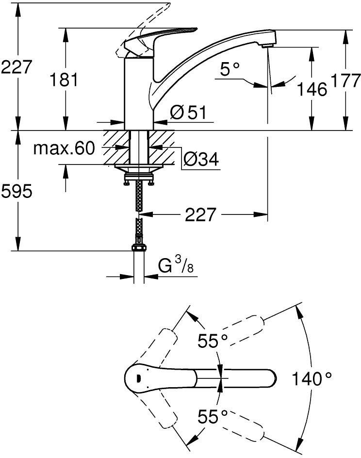 Смеситель оборудован поворотным литым изливом с углом поворота 140°, что делает его удобным для работы на кухне. Технология изолированного водотока обеспечивает чистоту воды, предотвращая ее контакт с металлическими частями корпуса. Аэратор имеет возможность демонтажа без использования инструментов, достаточно просто воспользоваться монетой для легкой очистки.