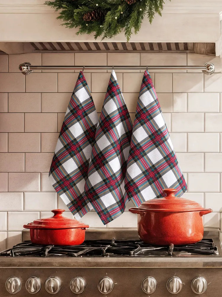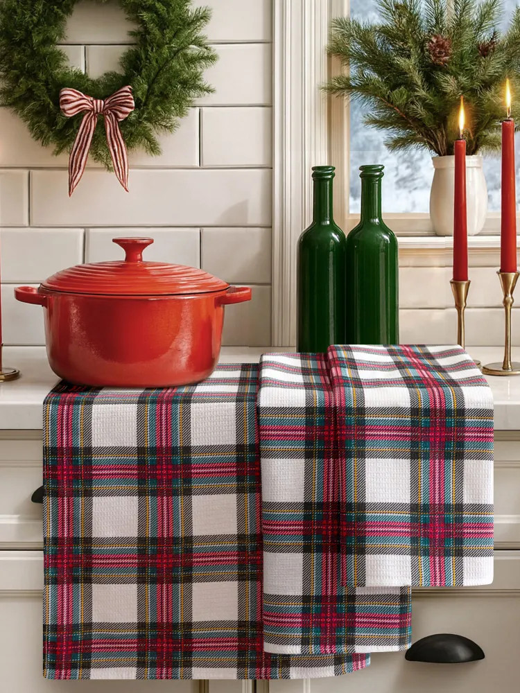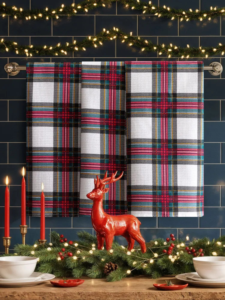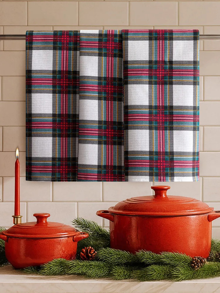 Набор вафельных полотенец — незаменимый новогодний подарок для настоящей хозяйки. Красивые и стильные полотенчики с тематическим принтом создадут дома уют. Такие вафельные полотенца — универсальный предмет текстиля для столовой вне зависимости от того, в каком стиле оформлен её интерьер! Мягкие кухонные полотенца из устойчивой к износу ткани (100% хлопок) будут полезны во время готовки и других хозяйственных дел. Прочные тканевые полотенца плотностью 150 г/м2 хорошо впитывают влагу и быстро высыхают. Их также отличает способность долго сохранять цвет и рисунок. Прямоугольные вафельные полотенчики, которые не оставляют следов ворса — универсальный домашний текстиль. Быстросохнущими полотенцами удобно вытереть руки, их можно положить под посуду у раковины или использовать, чтобы смахнуть крошки со стола. |