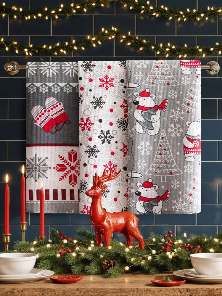 Серия: Snowy Joy Набор вафельных полотенец — незаменимый новогодний подарок для настоящей хозяйки. Красивые и стильные полотенчики с тематическим принтом создадут дома уют. Такие вафельные полотенца — универсальный предмет текстиля для столовой вне зависимости от того, в каком стиле оформлен её интерьер! Мягкие кухонные полотенца из устойчивой к износу ткани (100% хлопок) будут полезны во время готовки и других хозяйственных дел. Прочные тканевые полотенца плотностью 150 г/м2 хорошо впитывают влагу и быстро высыхают. Их также отличает способность долго сохранять цвет и рисунок. Прямоугольные вафельные полотенчики, которые не оставляют следов ворса — универсальный домашний текстиль. Быстросохнущими полотенцами удобно вытереть руки, их можно положить под посуду у раковины или использовать, чтобы смахнуть крошки со стола. |