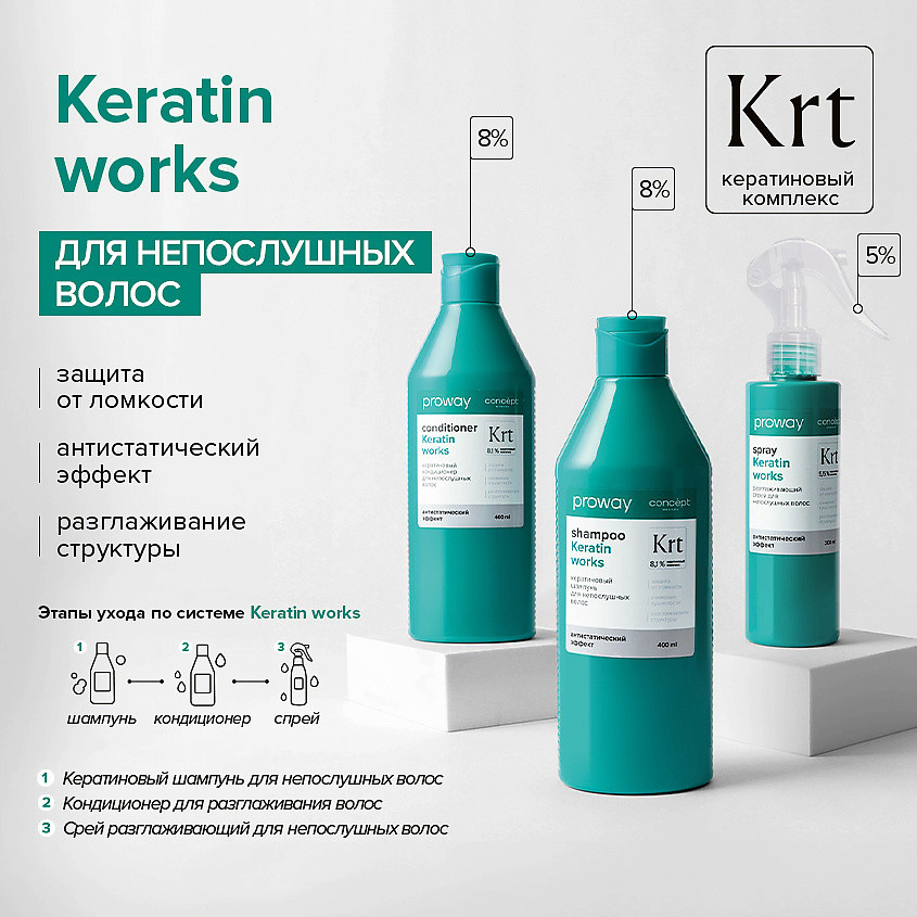 Concept Шампунь с кератином для непослушных и пушистых волос «Keratin Works»