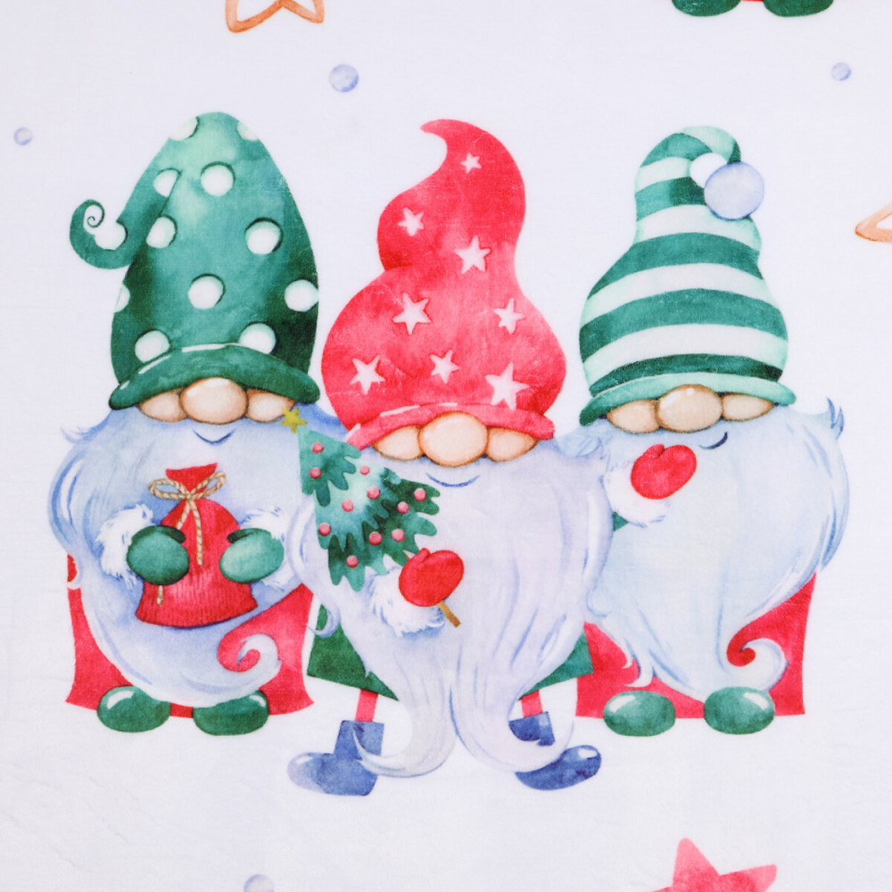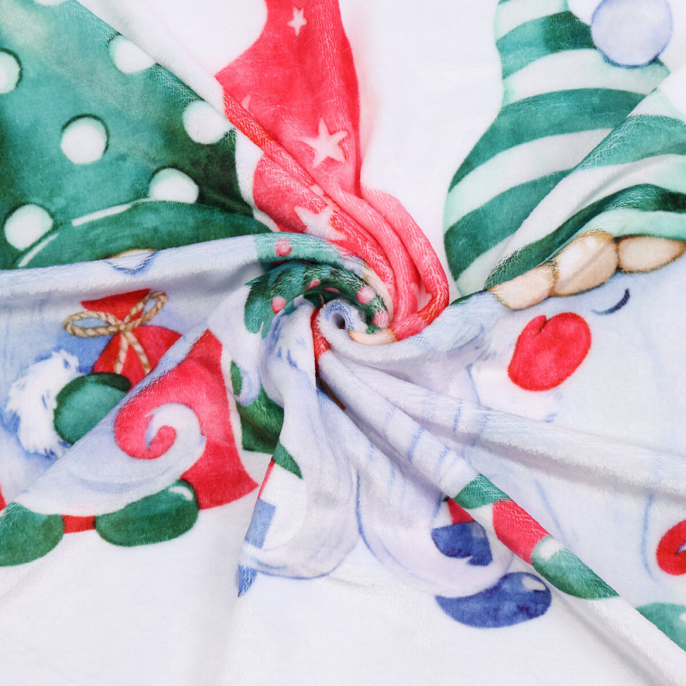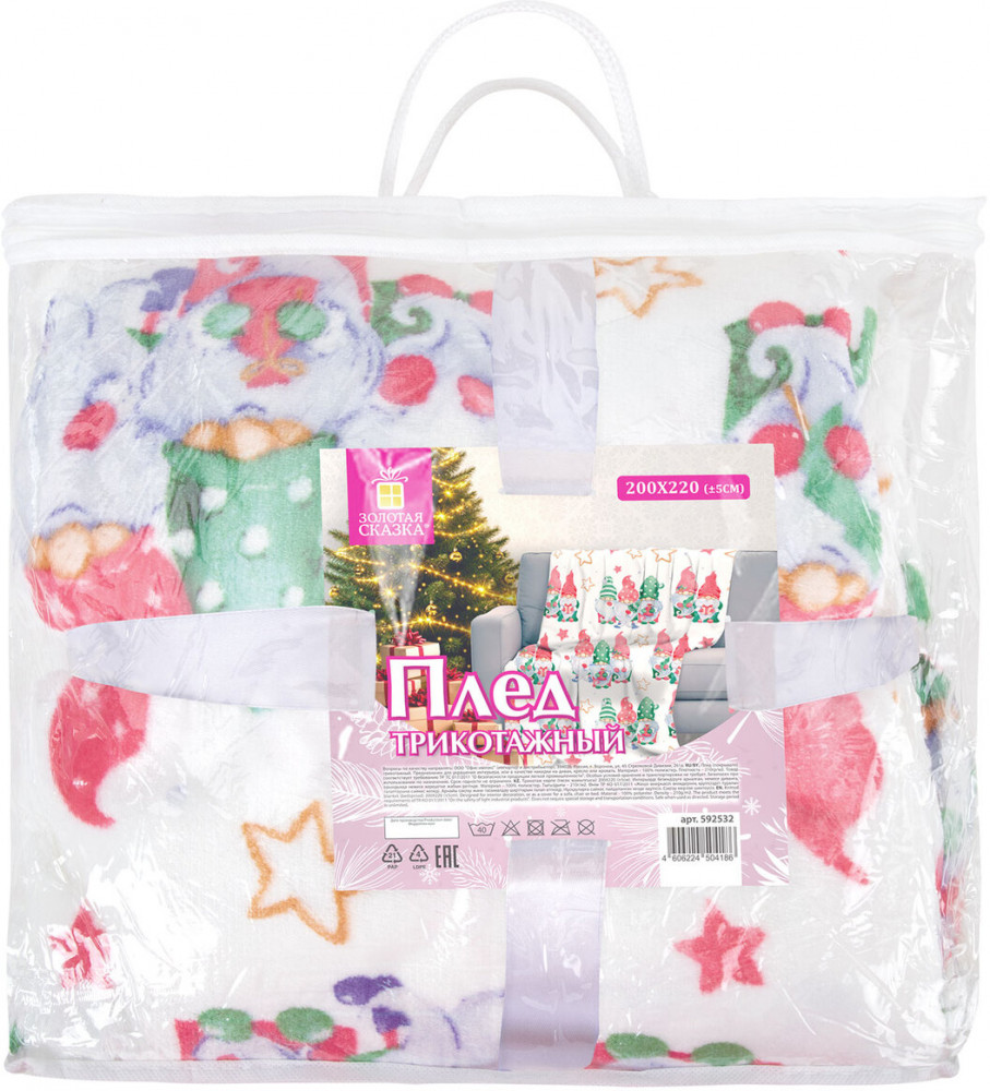 Плед выполнен из полиэстера. Его поверхность украшена нежными иллюстрациями гномиков с ёлочками и подарками. Такой плед не только согреет вас физически, но и подарит эмоциональное тепло, напоминая о предстоящих новогодних чудесах. Плед упакован в плотный полиэтиленовый мешок с полипропиленовыми ручками и молнией. Внутри плед обвязан атласной ленточкой, что делает его отличным готовым новогодним подарком!