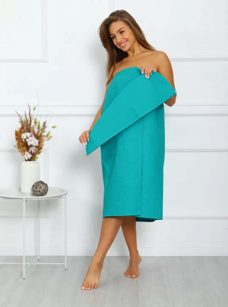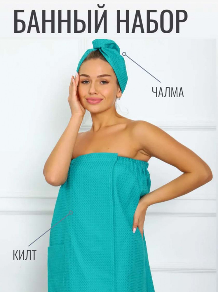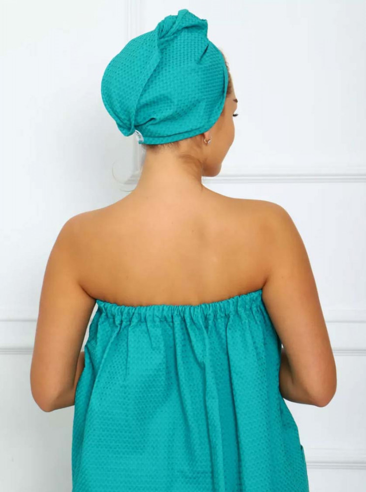 Женский подарочный набор для бани — идеальный вариант для любительниц сауны, хаммама, спа салона. Прекрасный подарок для девушек и женщин. В комплект входит: килт банный на резинке с липучкой и чалма на пуговице (тюрбан для сушки волос). Изделия выполнены из вафельного полотна, которое обладает отличной гигроскопичностью и хорошо впитывает влагу, быстро высыхает, выглядит благородно за счет определенной фактуры рисунка в клетку 7×7 мм. Данный материал произведен из 100% хлопка. Поэтому килт и полотенце не вызывают аллергии, приятны к телу, позволяют коже «дышать». Это оригинальная и практичная замена обычному махровому полотенцу или простыне.