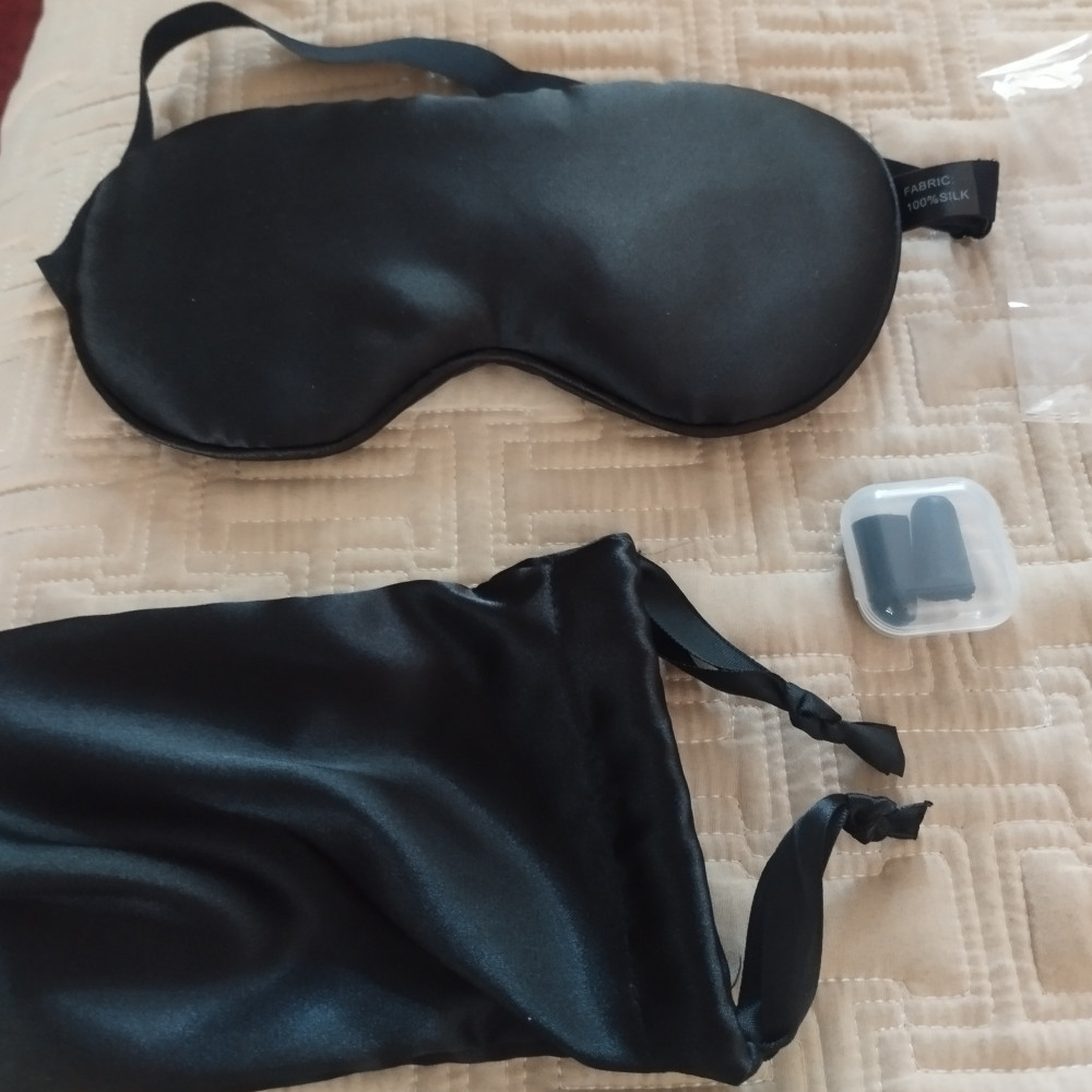 Отличная маска для сна! Мягкая, вообще не ощущаю ее, комфортно спать. Полностью приглушает свет. Имелся запах, но после стирки исчез. Приятно,что есть мешочек для хранения и беруши.