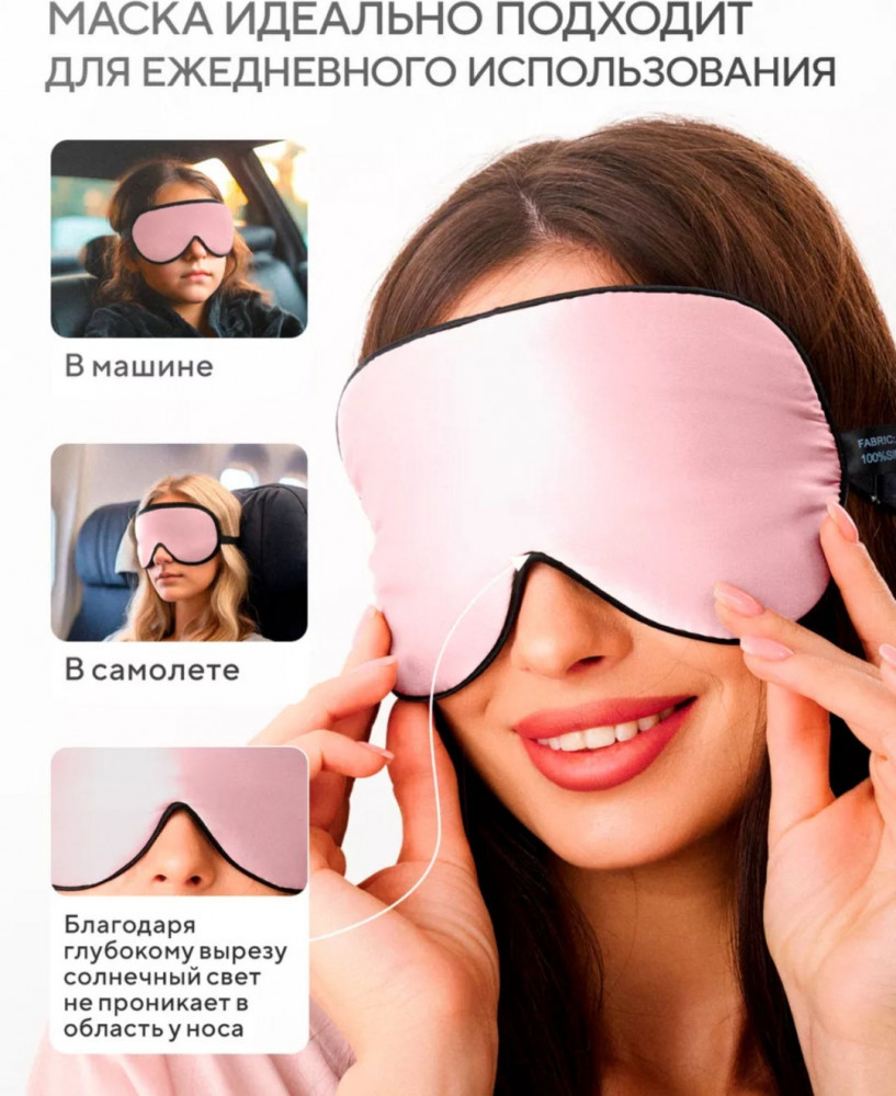 Заказывала без отзывов, переживала. Но маска превзошла все ожидания. Хорошо держится, полностью блокирует свет. На ощупь нежнейшая и выглядит шикарно. В подарок идёт мешочек и беруши! Теперь хочу заказать на подарки всем!