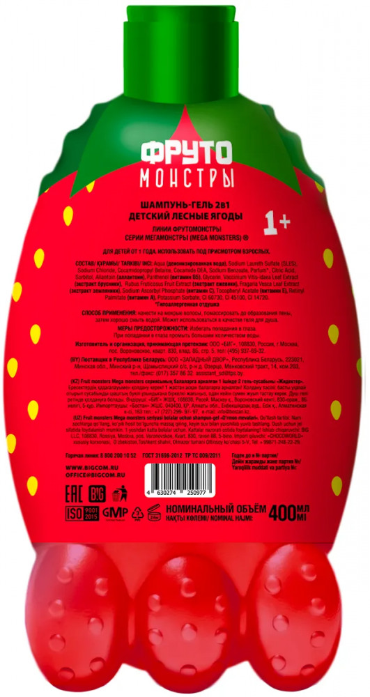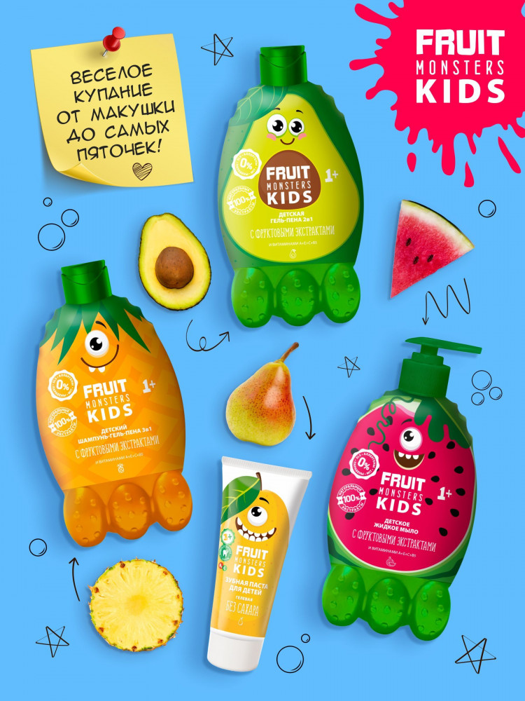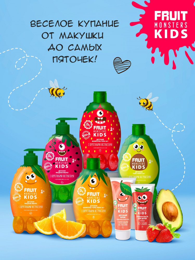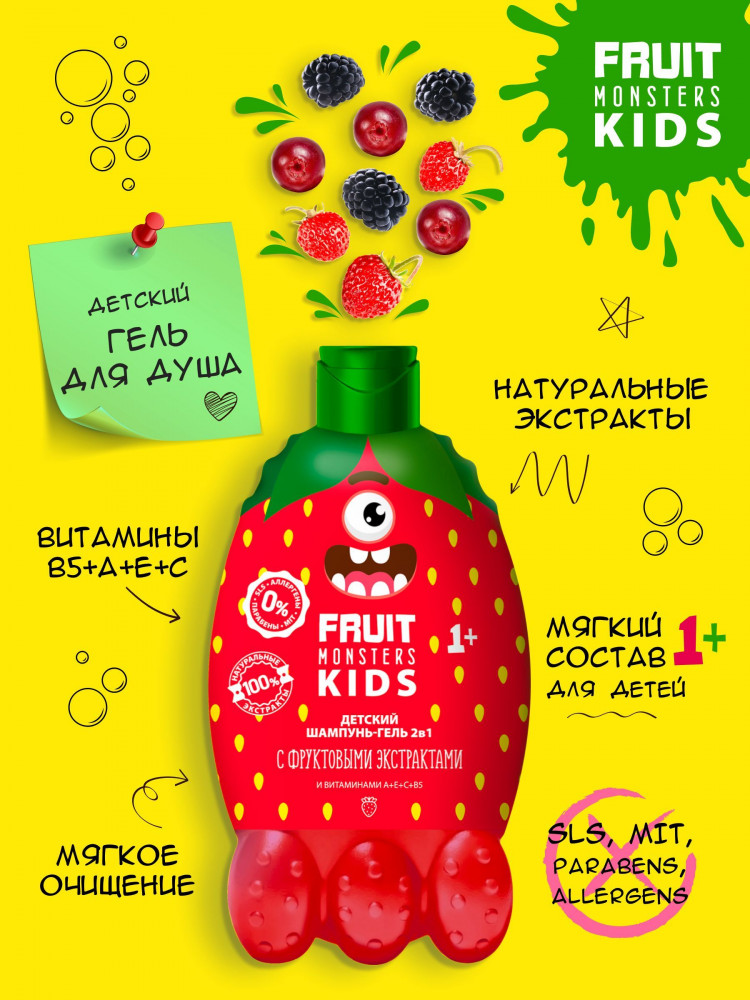 Мегамонстры Шампунь-гель для купания детский 2 в 1 «Fruit Monsters Kids. Лесные ягоды»