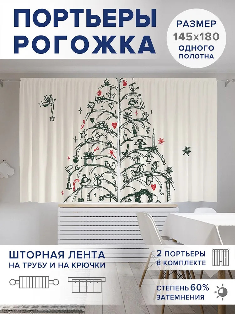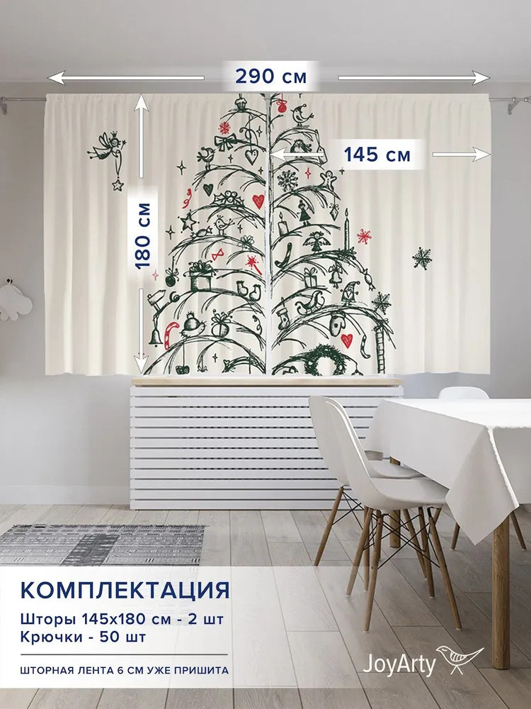 JoyArty Комплект штор коротких с фотопечатью «Елка с подарками»новинка -20%