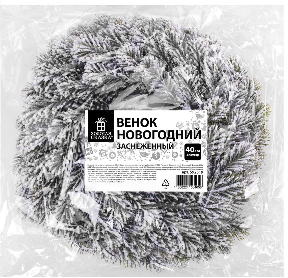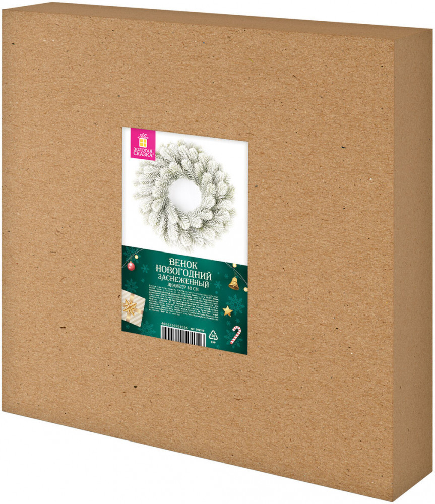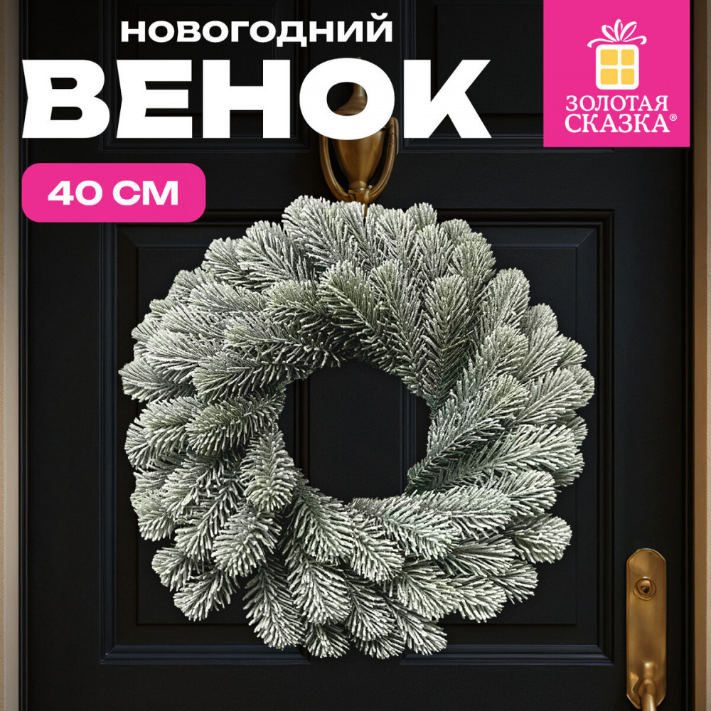 Венок новогодний ЗОЛОТАЯ СКАЗКА станет прекрасным украшением для дома или офиса. Венок преобразит пространство и подарит ощущение праздника. Венок новогодний диаметром 40 см представляет собой конструкцию из пластикового каркаса и закрепленных к нему ветвей.
