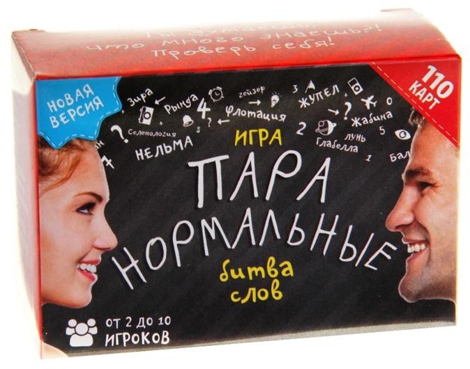 Лас Играс Настольная игра «Пара нормальные»В данный момент этот товар отсутствует в продаже. Возможно, у нас найдется аналогичный или похожий товар здесь. Серия: Интеллектуальный марафон Поиграв хоть раз в эту игру, вы узнаете много слов и интересных фактов, которыми сможете удивлять своих друзей и знакомых! В новом издании вы найдете множество новых, интересных слов и вопросов. |