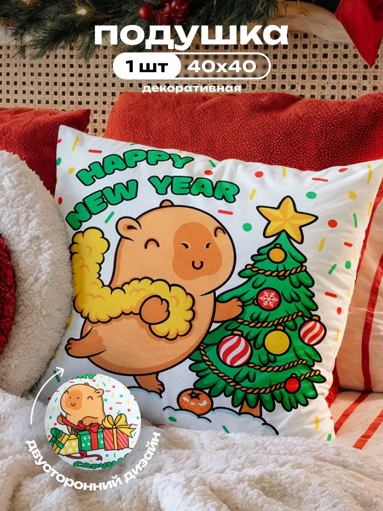 Crazy Getup Подушка декоративная «Christmas Capybara»новинка -35%