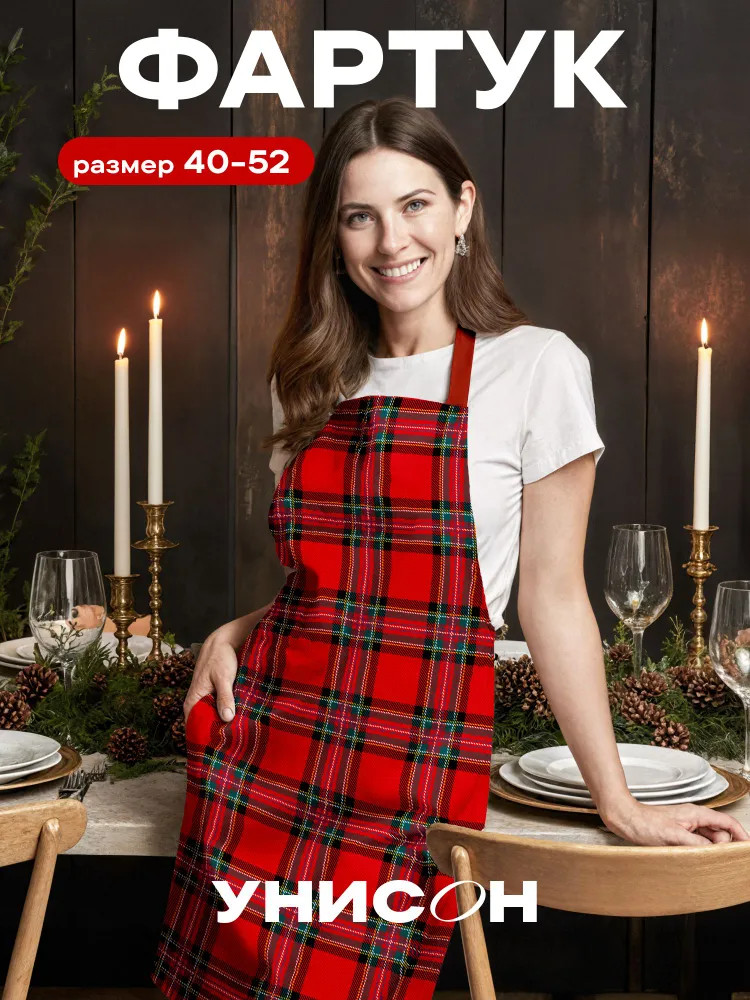 Новогодний фартук идеально подойдет для готовки или мытья посуды. Универсальная модель (рогожка, 100% хлопок) отлично сохраняет форму и цвет, поэтому будет незаменима во время работы на кухне. Комфортный передник позволит получать полное удовольствие в процессе приготовления блюд или занятий творчеством. Такую защиту от пятен и брызг легко снимать и надевать. Красивый фартук с новогодним дизайном подарит приятное настроение во время готовки. Красный тканевый передник смотрится особенно эстетично с узором в шотландскую клетку: с ним домашние дела будут ощущаться приятнее.