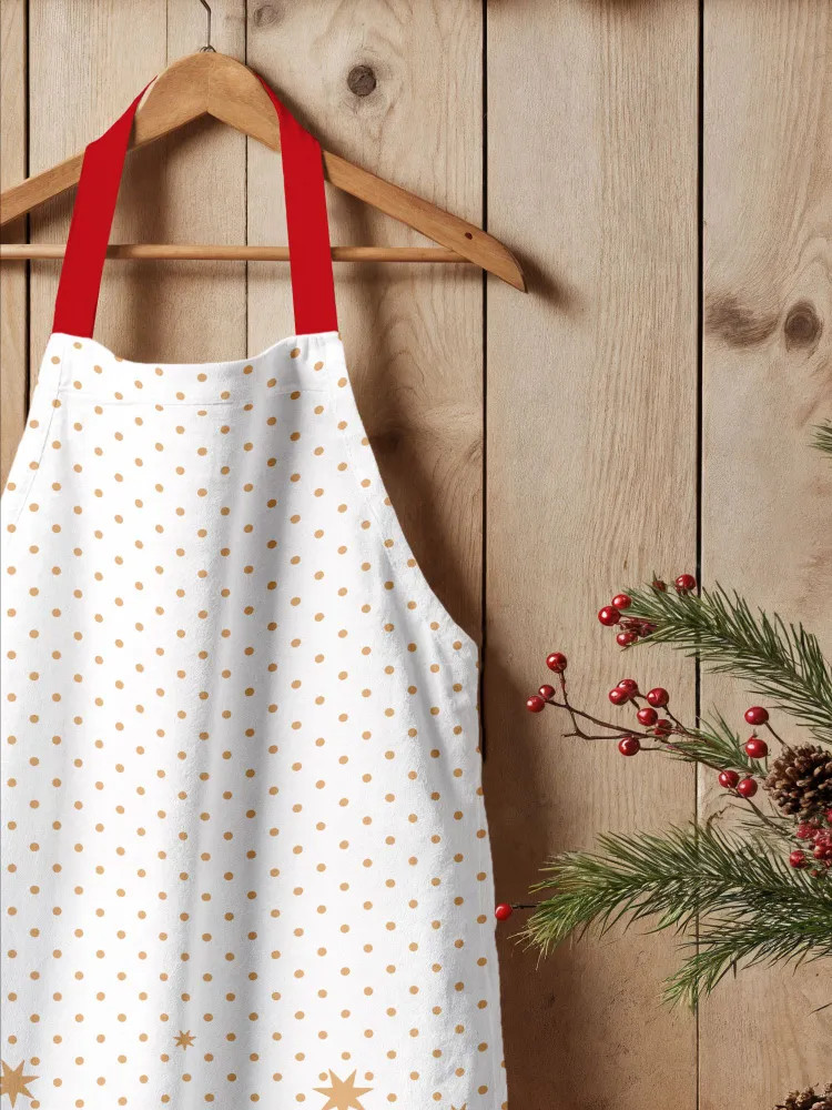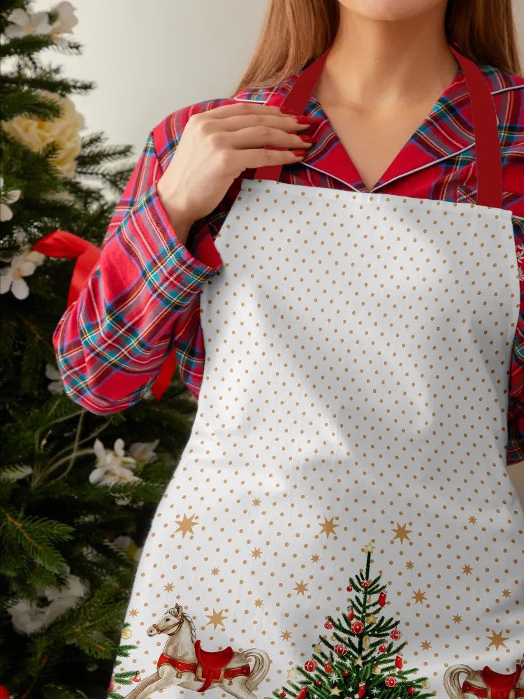 Серия: Christmas story Нет лучшего новогоднего подарка для любителей готовить, чем качественный и стильный фартук! Он надежно защитит одежду от брызг влаги и грязных пятен. Сделанный из прочной и плотной рогожки фартук отлично сохраняет форму, цвет и аккуратный вид. Фартук с качественными швами долго прослужит вам при создании новых кулинарных шедевров. Износостойкий хлопковый передник представлен в размере 60×70 см. Эстетичный красно-белый фартук в горошек подарит праздничное настроение! Красивый фартук с красным подолом, украшенными елочками, лошадками-качалками и подарками, навеет нежные воспоминания о добром детстве: он порадует тех, кто ждет праздники. Он фиксируется лямками на шее и спине, поэтому идеален для готовки или мытья посуды. Благодаря длинным завязкам удобный фартучек подойдет на любой тип фигуры. |