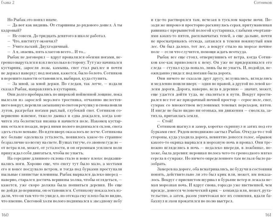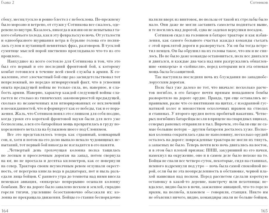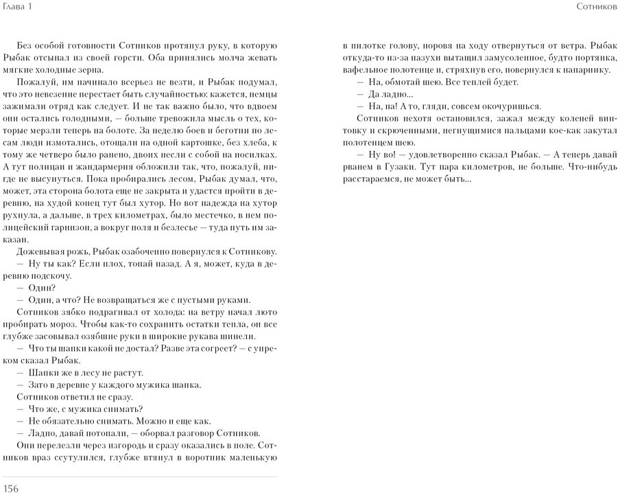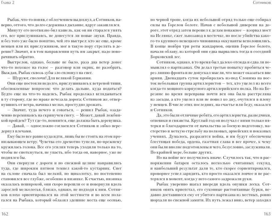 Повесть «Сотников» — это история двух партизан, Сотникова и его друга, которые ведут борьбу против захватчиков на оккупированной территории. Быков показывает, как война меняет людей, заставляет их делать выбор между долгом и выживанием. В «Сотников» автор мастерски передает атмосферу страха, отчаяния и надежды, делает произведение глубоким и многослойным. Повесть не только рассказывает о военных событиях, но и исследует внутренний мир человека в условиях крайнего стресса.