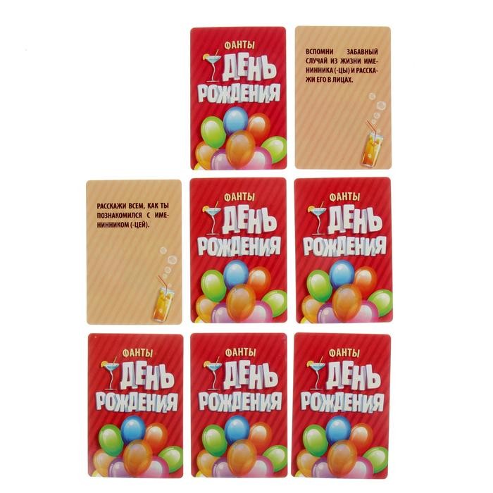 В данный момент этот товар отсутствует в продаже. Возможно, у нас найдется аналогичный или похожий товар здесь. Рецепт самого классного дня рождения прост: друзья, алкоголь, ну и, конечно же, фанты «День Рождения»! Оригинальные и весёлые задания, масса положительных эмоций и незабываемые впечатления!