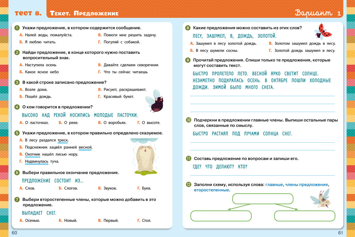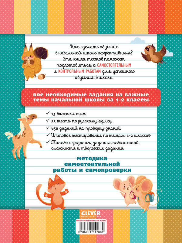 Серия: Начальная школа «Тесты. Русский язык. 1-2 классы» — это сборник заданий для начальной школы, который поможет оценить знания школьника и понять, каким темам нужно уделить больше внимания.Работать с тетрадью тестов можно и на уроках в школе, и дома при подготовке домашнего задания. Выполняя понятные и интересные упражнения, ребенок научится сам проверять себя, а это умение очень важно для ученика. Каждая проверочная работа в сборнике состоит из 4 вариантов по 12 заданий. Где-то нужно выбрать правильный ответ, где-то — найти ошибку, где-то можно и поиграть — раскрашивать, рисовать! Есть и задания повышенной сложности, где ответ нужно сформулировать самому.Тетрадь — тренажер поможет начинающему школьнику развивать логику, мышление, внимание, научит оценивать свои знания, видеть ошибки. Вместе с книгой ученик подготовится к самостоятельным и контрольным работам в школе и будет приходить на уроки с уверенностью и без страха! |