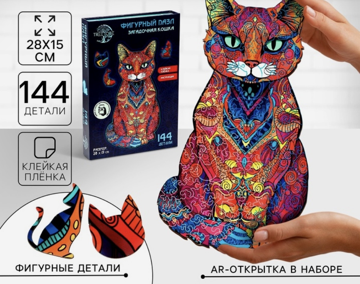 Фигурный пазл из дерева Кот — это хорошая головоломка для взрослого и для детей, антистресс и хобби для всей семьи. Это уникальные авторские деревянные пазлы для взрослых и детей. Головоломка состоит из деталей необычной формы-силуэтов животных, птиц и растений, которые похожи на героев сказок и мультфильмов. |