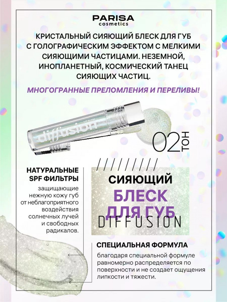Parisa Cosmetics Блеск для губ «Сияющий кристалл. Diffusion Lip Gloss Crystal», тон 2 Нежный изумруд