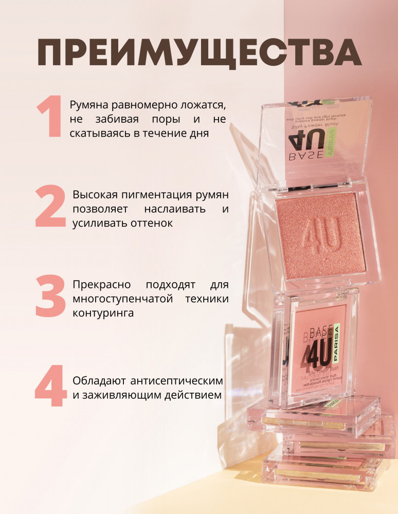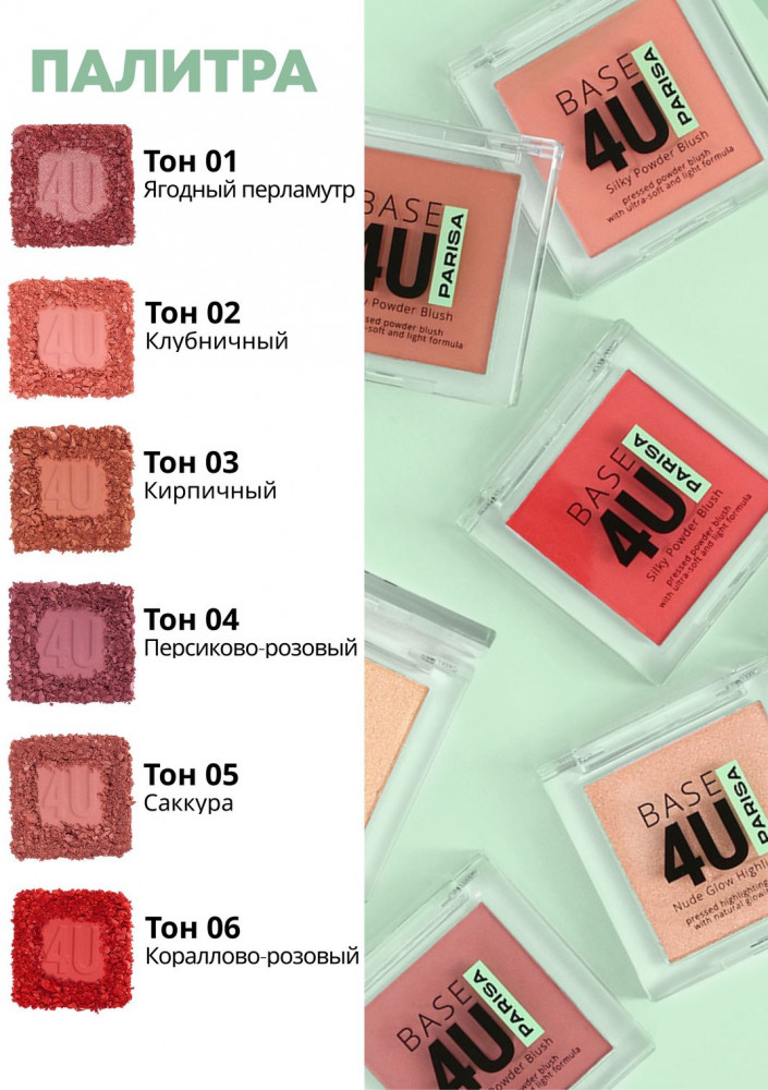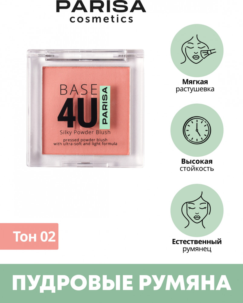 Parisa Cosmetics Румяна для макияжа лица шелковистые прессованные, оттенок 02 Клубничный