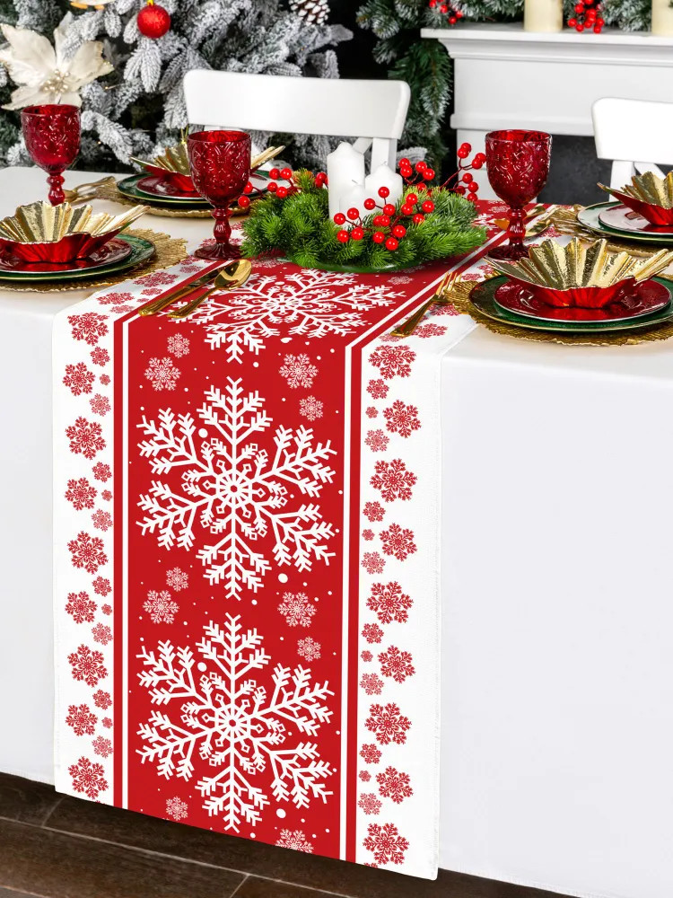 Многоразовая скатерть позволит сохранить поверхность стола в отличном состоянии. Кухонную дорожку можно использовать дома и в квартире. Чтобы разнообразить сервировку и оформление стола, попробуйте сочетать скатерть-дорожку с другими элементами столового текстиля. Нарядный предмет настольного декора позволит легко обновить привычный интерьер! С ним вы почувствуете праздничную атмосферу в Новый год и Рождество, а еще дорожка подойдет для встречи в семейном кругу.