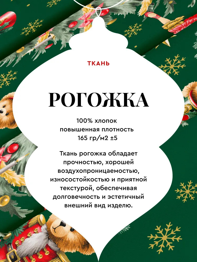 Стильная скатерть-дорожка — незаменимый предмет сервировки большого новогоднего стола! Плотная тканевая дорожка из рогожки отлично сохраняет форму за счет ровной обработки краев и качественной прострочки. Неприхотливая в уходе и устойчивая к выцветанию дорожка предотвратит появление царапин и пятен на кухонном столе. Прямоугольная дорожка создаст у вас в квартире уют. Красно-зеленая скатерть с рисунком новогодних елок и игрушек идеально дополнит интерьер кухни. Скатерть с детализированным принтом елочек, медвежат и подарков подарит вам улыбку на целый день и позволит погрузиться в детство.