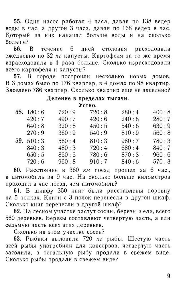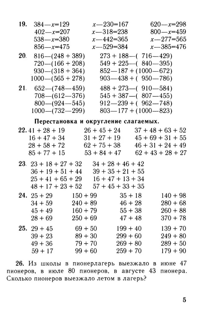 Сборник арифметических задач и упражнений для начальной школы. Часть 3 [1941]. Попова Н. С. Советский педагог-методист, доцент Наталья Попова — автор ряда учебников по арифметике, которые пользовались большой популярностью у учителей и выдержали множество переизданий. Задачники Поповой, которые отличают чёткость, структурированность, ясность изложения, не потеряли своей актуальности и по сей день. В настоящем пособии содержится множество задач на: сложение и вычитание в пределах тысячи; перестановку и округление слагаемых; умножение и деление в пределах тысячи устно и письменно; нумерацию и вычитание многозначных чисел; меру длины, веса и времени; раздробление и превращение именованных чисел; умножение многозначного числа на однозначное; устное умножение на 5 и 50; простейшие дроби; измерение и черчение; площадь квадрата и прямоугольника. Условия задач изложены внятным, грамотным языком и служат хорошим подспорьем для закрепления пройденного материала. |