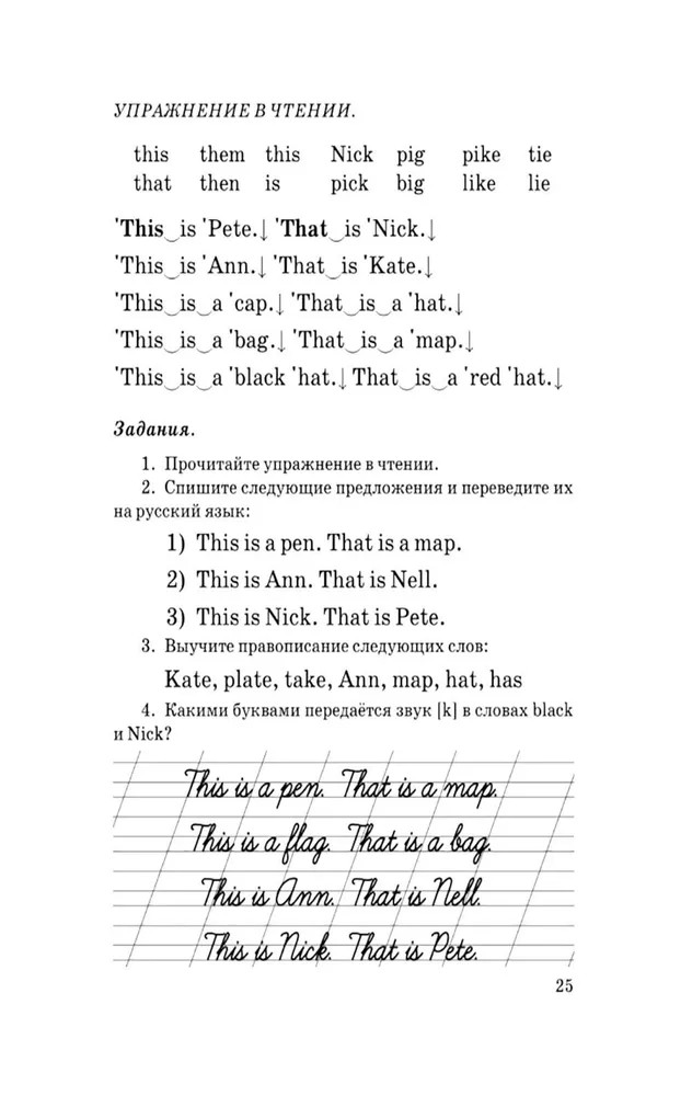 Изучение иностранного языка, в частности английского, в начальной школе очень важно с точки зрения развития памяти, внимания и речи учащихся. Многие дети в этом возрасте восприимчивы к новой информации, хорошо запоминают и легко воспроизводят изученный материал. Поэтому большое значение имеет раннее начало занятий английским языком. При этом очень важно, чтобы учитель смог заинтересовать учеников и в процессе работы поддержать этот интерес на должном уровне. Для реализации образовательных и воспитательных целей данное учебное пособие предлагает ученикам 3 класса разноплановые задания: на слуховое восприятие, на зрительную память, обучающие чтению и письму, изображения с печатными и прописными буквами. Учащиеся поэтапно знакомятся с английскими буквами, слогами, словами и предложениями, с интонацией и произношением. Наглядности тексту придают схемы, изображения предметов и ситуаций. Учебное пособие предназначено для учителей начальных классов, а также родителей, занимающихся с детьми самостоятельно. |